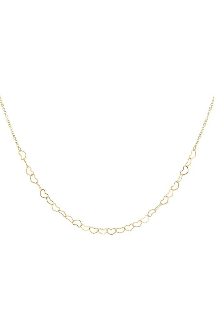 Hoe tof is deze gouden ketting met in elkaar gehaakte hartjes, superleuk! De ketting kan perfect enkel gedragen worden. Houd jij meer van een statement look? Combineer dan meerdere kettingen met elkaar! Erg leuk voor bijvoorbeeld een tof festival! De ketting is gemaakt van Stainless steel en heeft een verstelbare sluiting waardoor je de ketting vanaf 38 tot en met 43 cm kan dragen, ideaal!